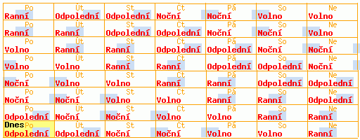 Typ směnných turnusů: Kolotoč 4×2 II / D [nonstop:4d-d]