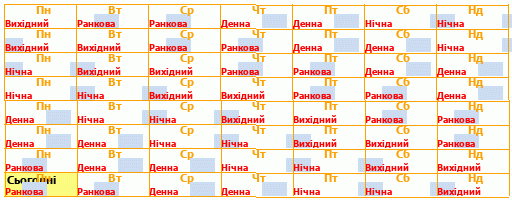 Тип змінних розкладів: Карусель 4 × 2 ІІ / C [nonstop:4d-c]