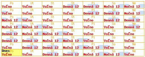 Typ výmenných turnusov: Štvordňovej II / B [nonstop:4y-b]