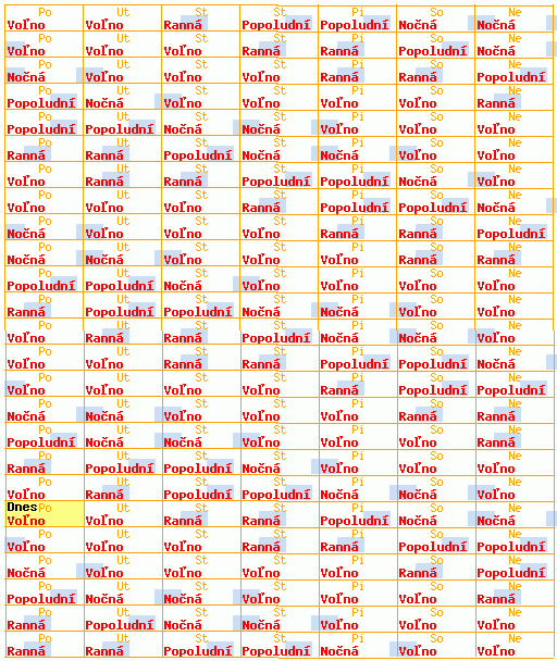 Typ výmenných turnusov: Presýpačky / B [nonstop:5k-b]