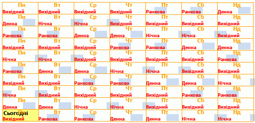Тип змінних розкладів: Неперервна 6/4 I / C [nonstop:4f-c]