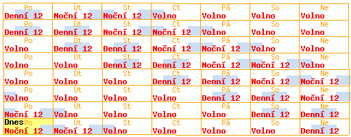 Typ směnných turnusů: Čtyřdenky II / D [nonstop:4y-d]