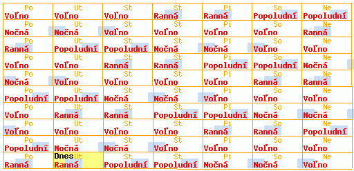 Typ výmenných turnusov: Nepretržitá 6/4 II / C [nonstop:4g-c]