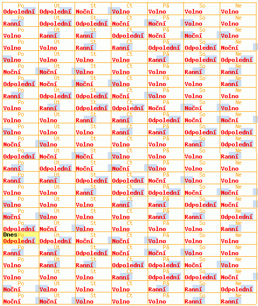 Typ směnných turnusů: Přesýpačky / D [nonstop:5k-d]