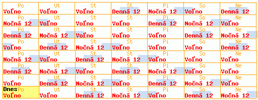 Typ výmenných turnusov: Strieľačky II / A [nonstop:4r-a]