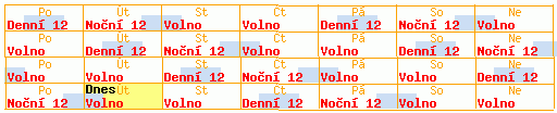 Typ směnných turnusů: Nepřetržitý 2/2 / 2 [dvanact:4p-2]