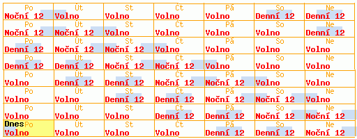 Typ směnných turnusů: Čtyřdenky II / A [nonstop:4y-a]
