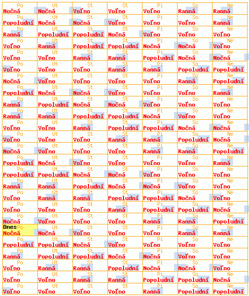 Typ výmenných turnusov: Presýpačky / A [nonstop:5k-a]