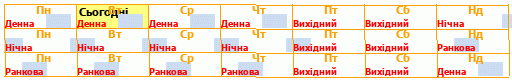 Тип змінних розкладів: Трисменна сімейна зміна / B [tri:3m-b]