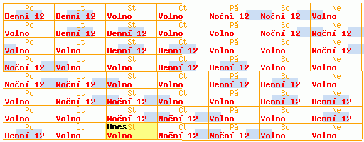 Typ směnných turnusů: Dvoudenky I / C [dvanact:4j-c]
