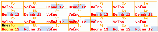 Typ výmenných turnusov: Krátky/dlhý 14+14 I / B [dvanact:4m-b]
