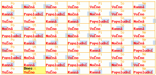 Typ výmenných turnusov: Nepretržitá 6/4 I / B [nonstop:4f-b]