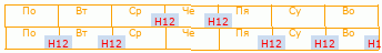 | | Понедельник | Вторник | Среды | Четверг | Пятница | Суббота | Воскресенье |