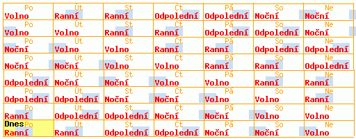 Typ směnných turnusů: Kolotoč 4×2 II / C [nonstop:4d-c]