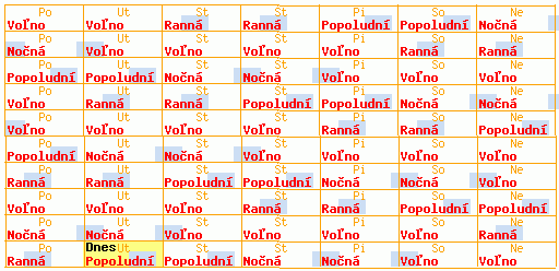 Typ výmenných turnusov: Nepretržitá 6/4 I / D [nonstop:4f-d]