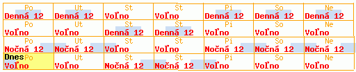 Typ výmenných turnusov: Krátky/dlhý 14+14 II / D [dvanact:4n-d]