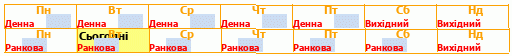 Тип змінних розкладів: Продаж ранкова/післяобідня / A [jednaplusdve:2r-a]