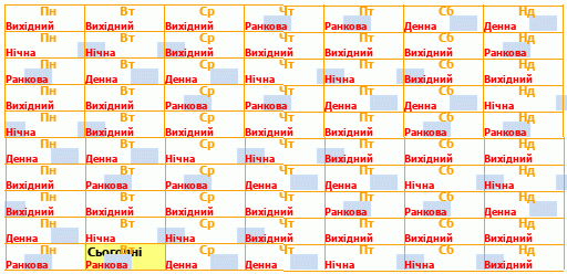 Тип змінних розкладів: Неперервна 6/4 ІІ / C [nonstop:4g-c]