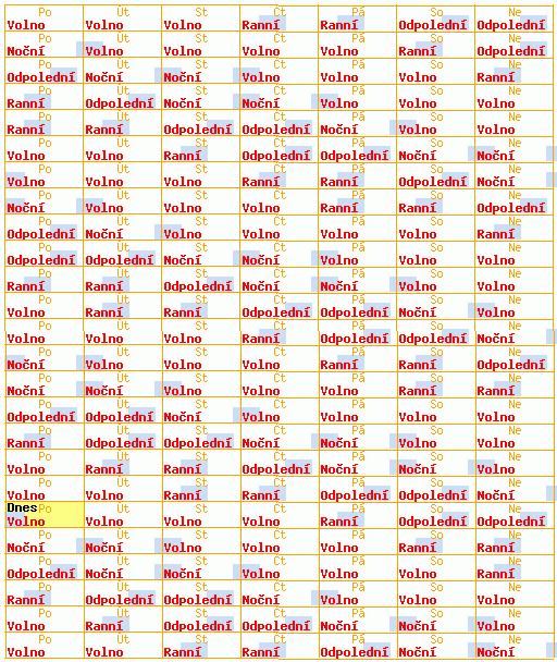 Typ směnných turnusů: Přesýpačky / E [nonstop:5k-e]