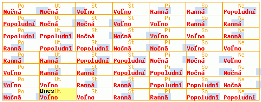 Typ výmenných turnusov: Kolotoč 4×2 I / B [nonstop:4c-b]