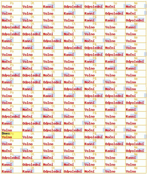 Typ směnných turnusů: Přesýpačky / B [nonstop:5k-b]
