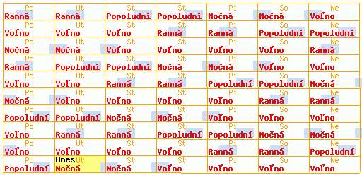 Typ výmenných turnusov: Nepretržitá 6/4 I / E [nonstop:4f-e]